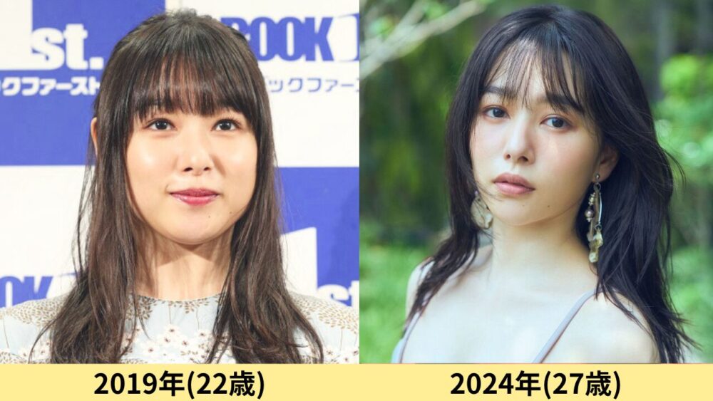 こちらは桜井日奈子さんの輪郭について、2024年と2019年の顔を比較した画像です。